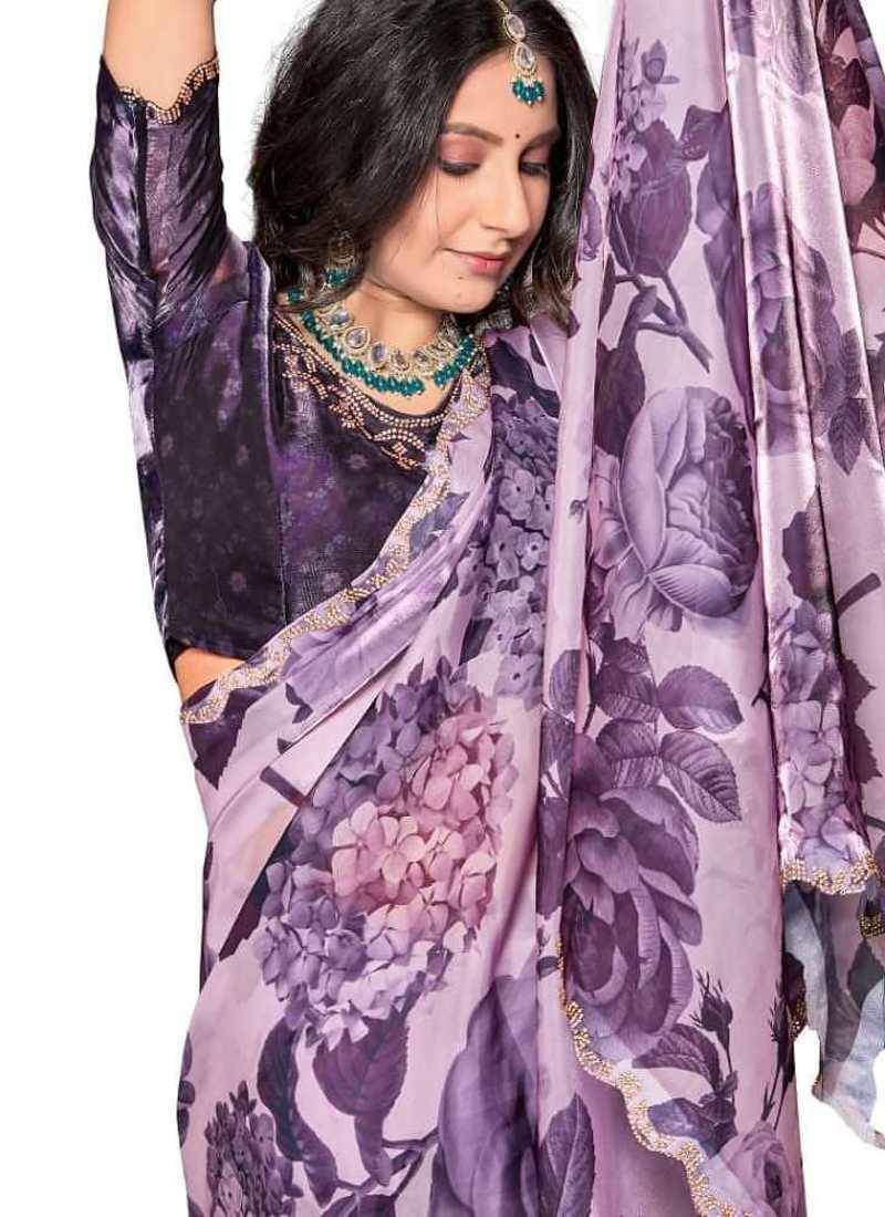Purple color orgenza digitial printed with zircon work saree and blouse