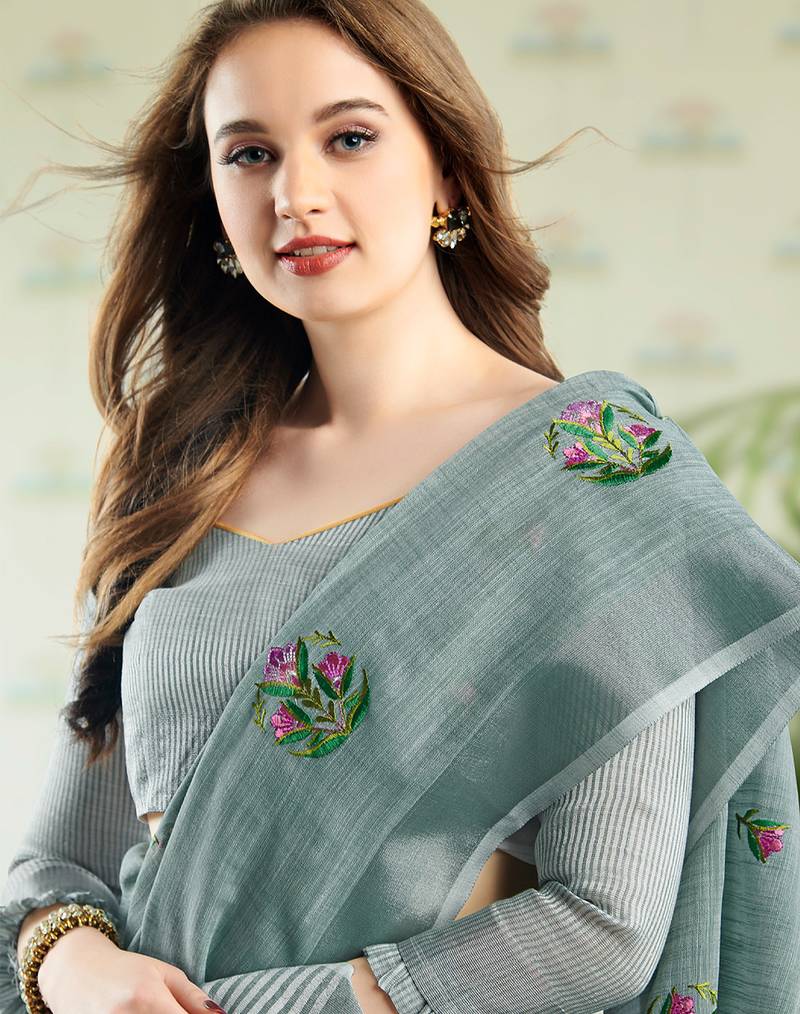| Product Name | Sea Green Color Linen Embroidered Work Saree | |