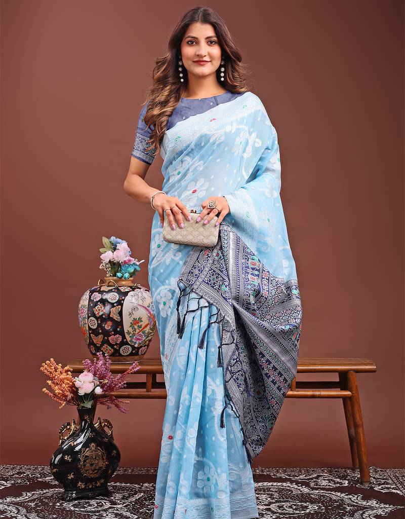 | Product Name | Sky Blue Color Linen Cotton Saree With Blouse | |