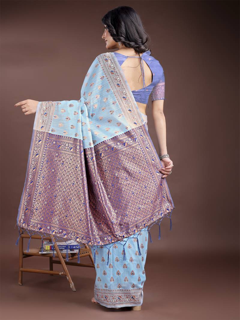 | Product Name | Sky Blue Color Linen Cotton Woven Saree With Blouse | |