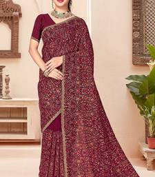 Wine color georgette embroidered saree with blouse
