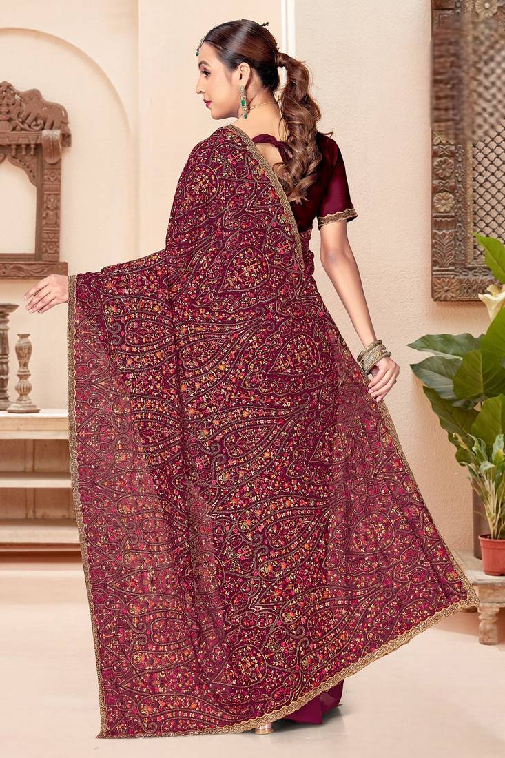 | Product Name | Wine Color Georgette Embroidered Saree With Blouse | |