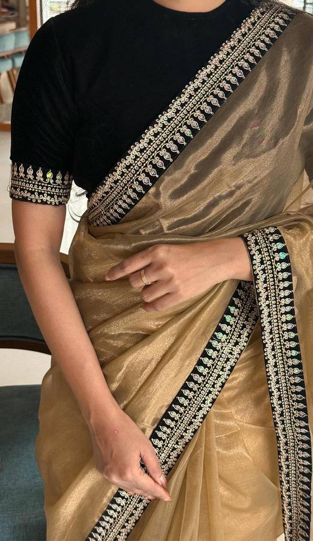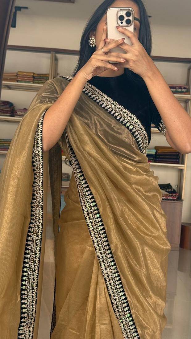 | • | Saree | : | Color- Golden / Fabric- Net |