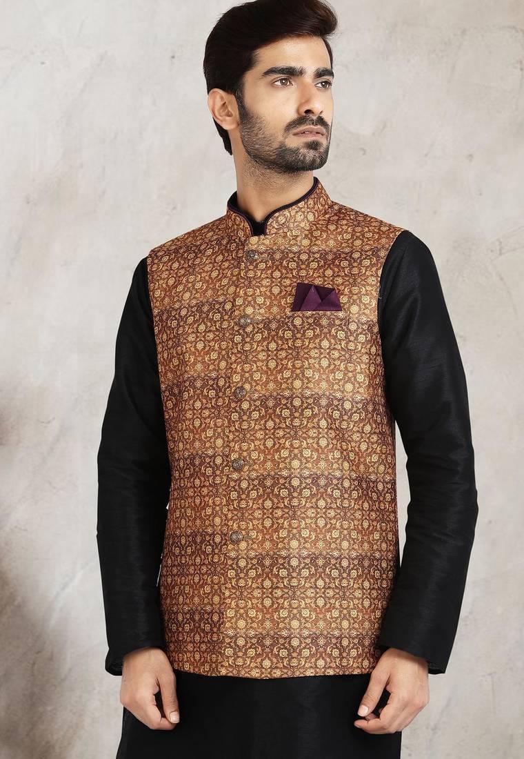 | Product Name | Beige Printed Banarasi Silk 3 Peice Jacket Set For Men | |