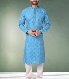 Blue printed cotton fabric straight kurta for men