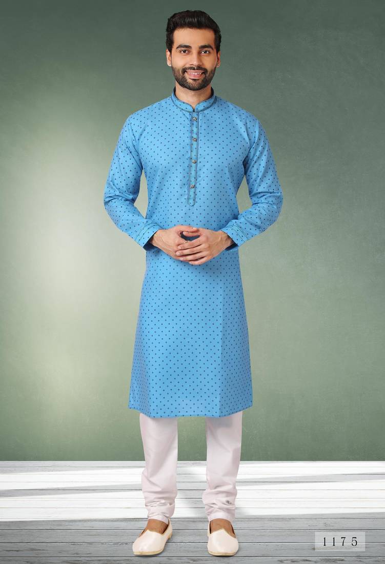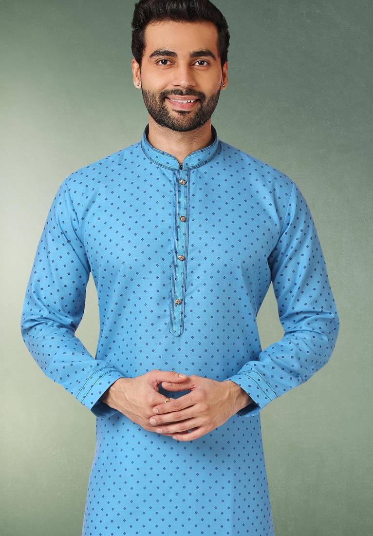 | Product Name | Blue Printed Cotton Fabric Straight Kurta For Men | |