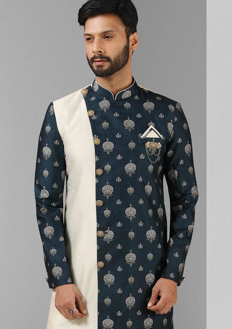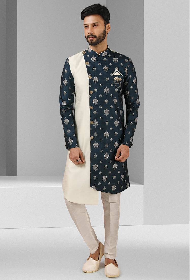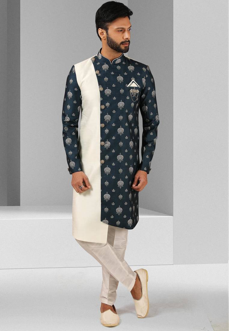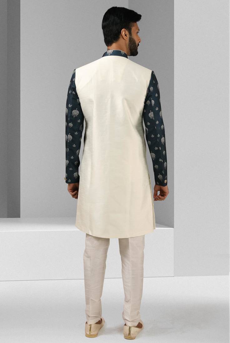 | Product Name | Cream Blue Plain & Priinted Art Silk Indo Western For Men | |