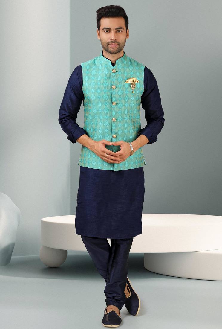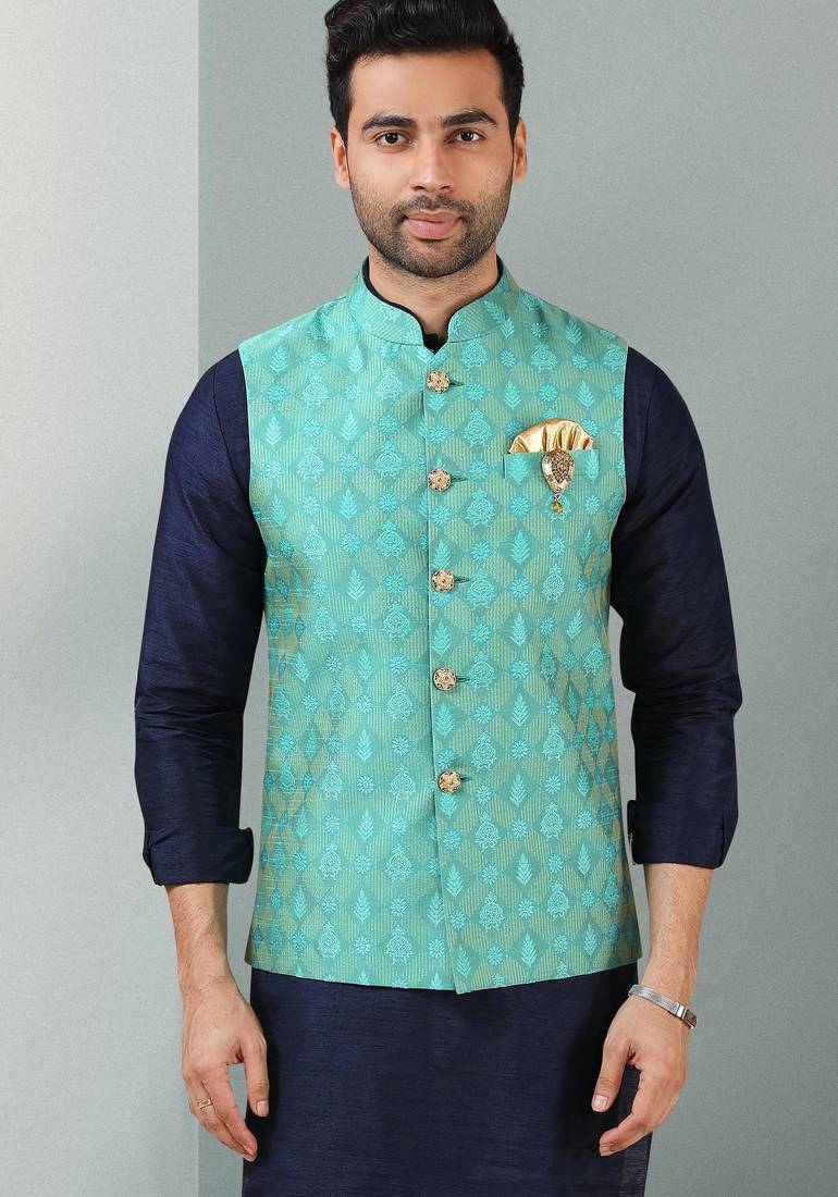| Product Name | Green Jacquard Banarasi Silk 3 Peice Jacket Set For Men | |