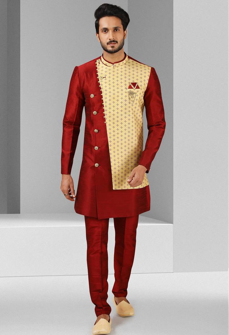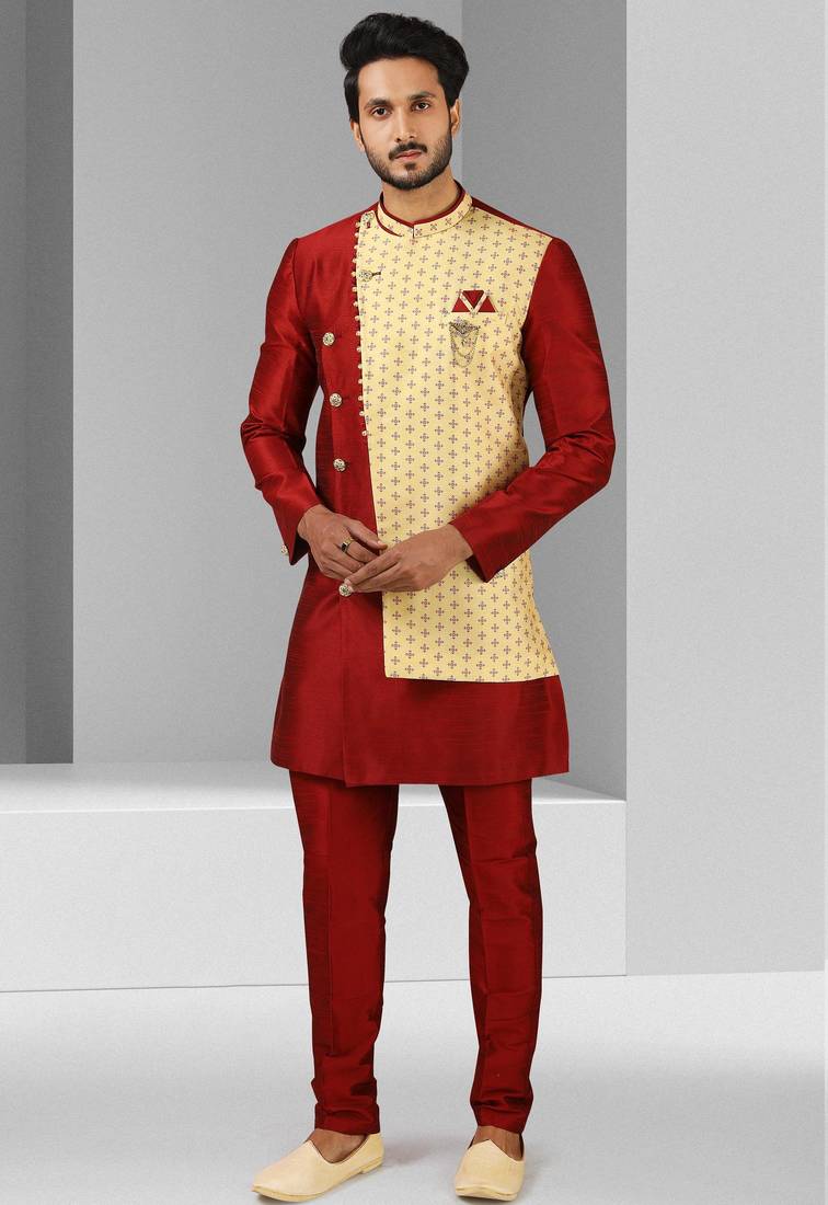 | Product Name | Maroon Plain & Priinted Art Silk Indo Western For Men | |