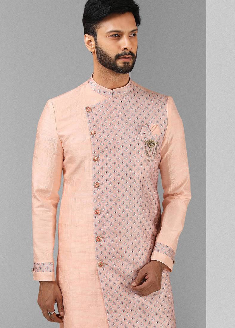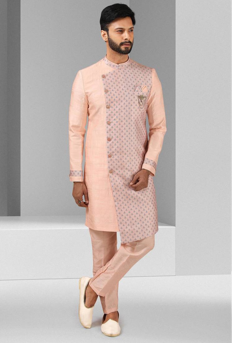 Product Name Pink Plain & Priinted Art Silk Indo Western For Men