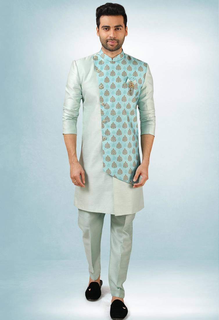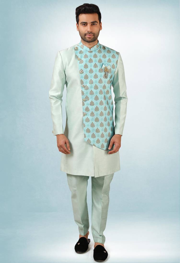 | Product Name | Blue Plain & Priinted Art Silk Indo Western For Men | |