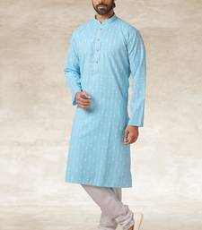 Sky blue printed cotton fabric straight kurta for men