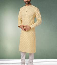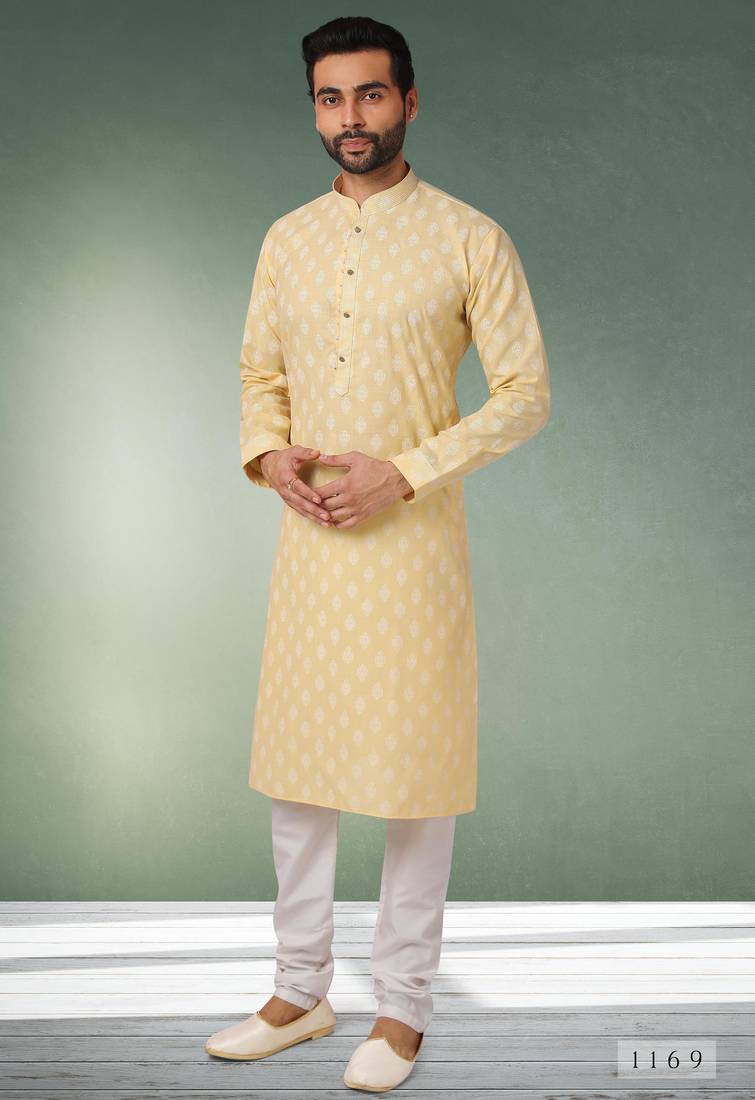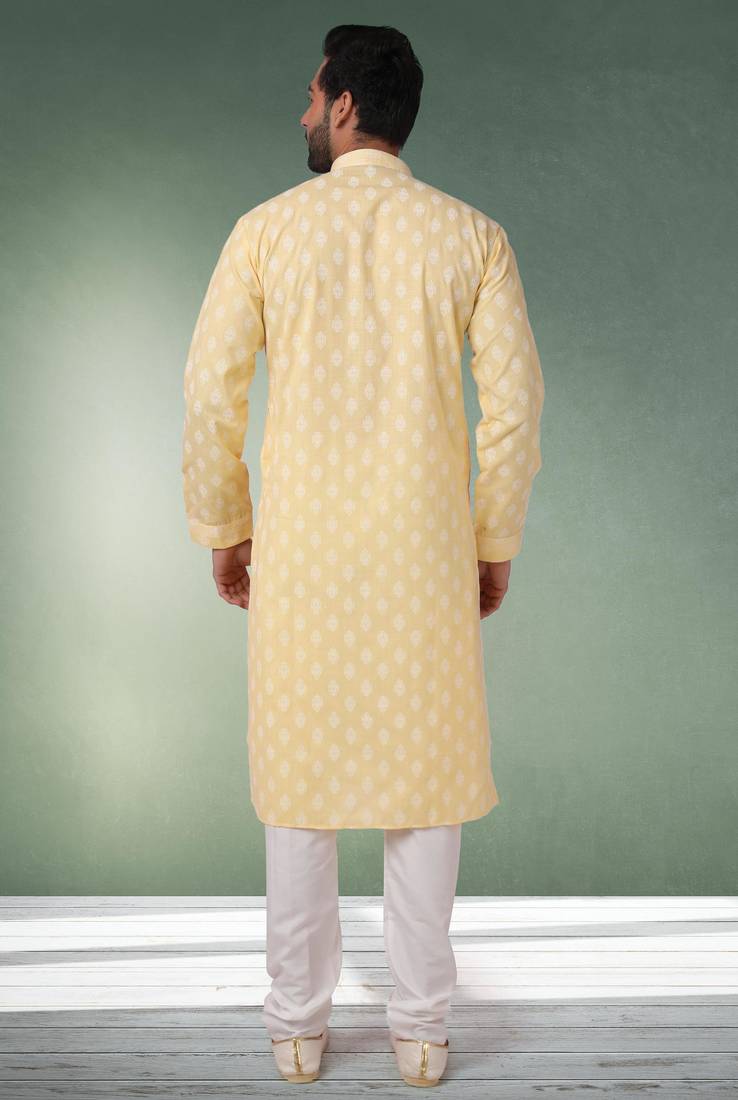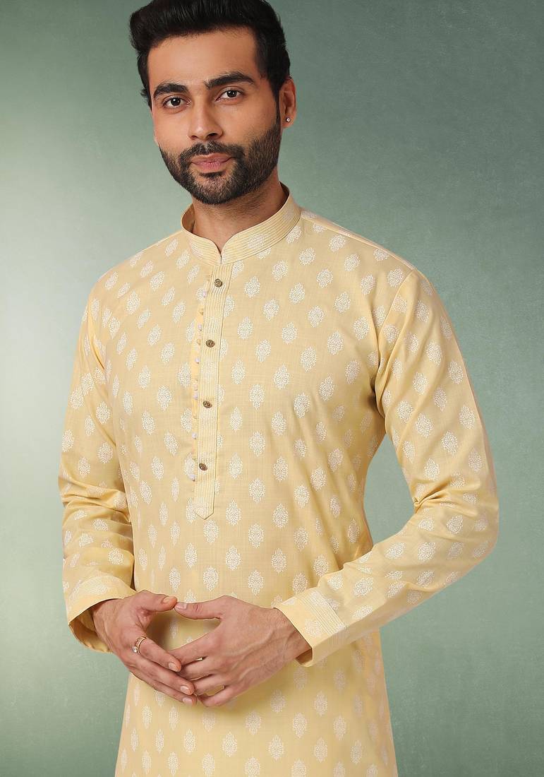Product Name Yellow Printed Cotton Fabric Straight Kurta For Men