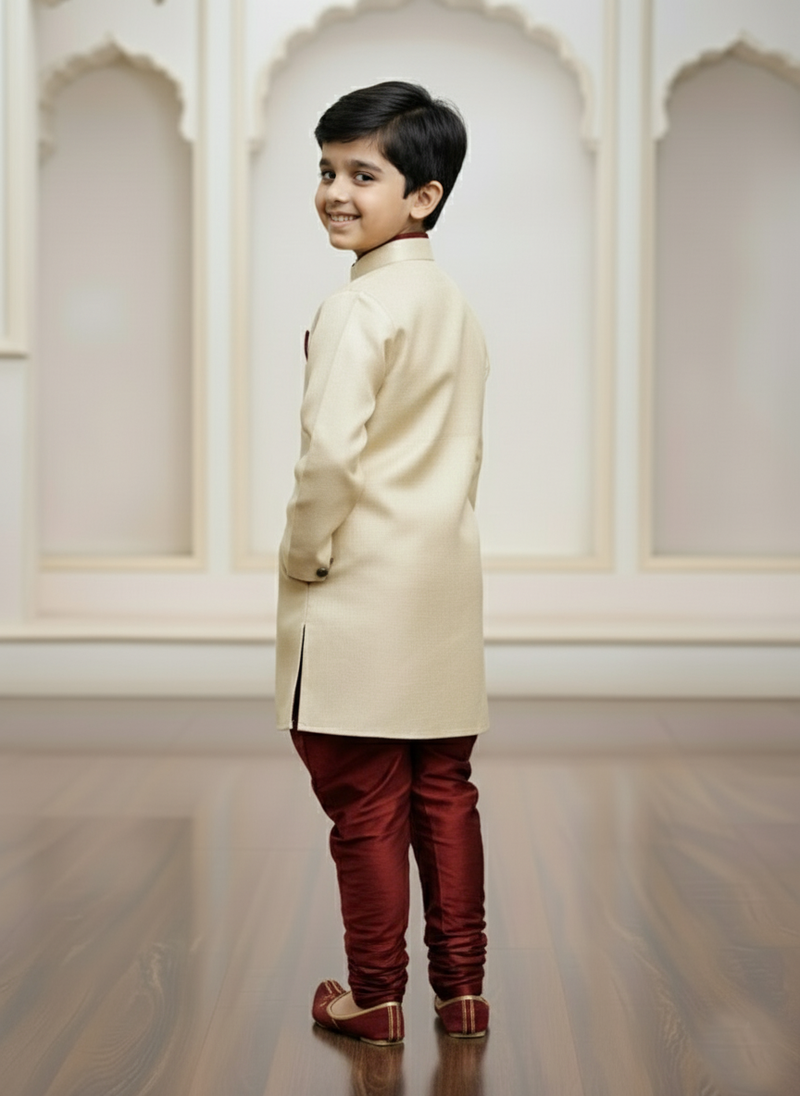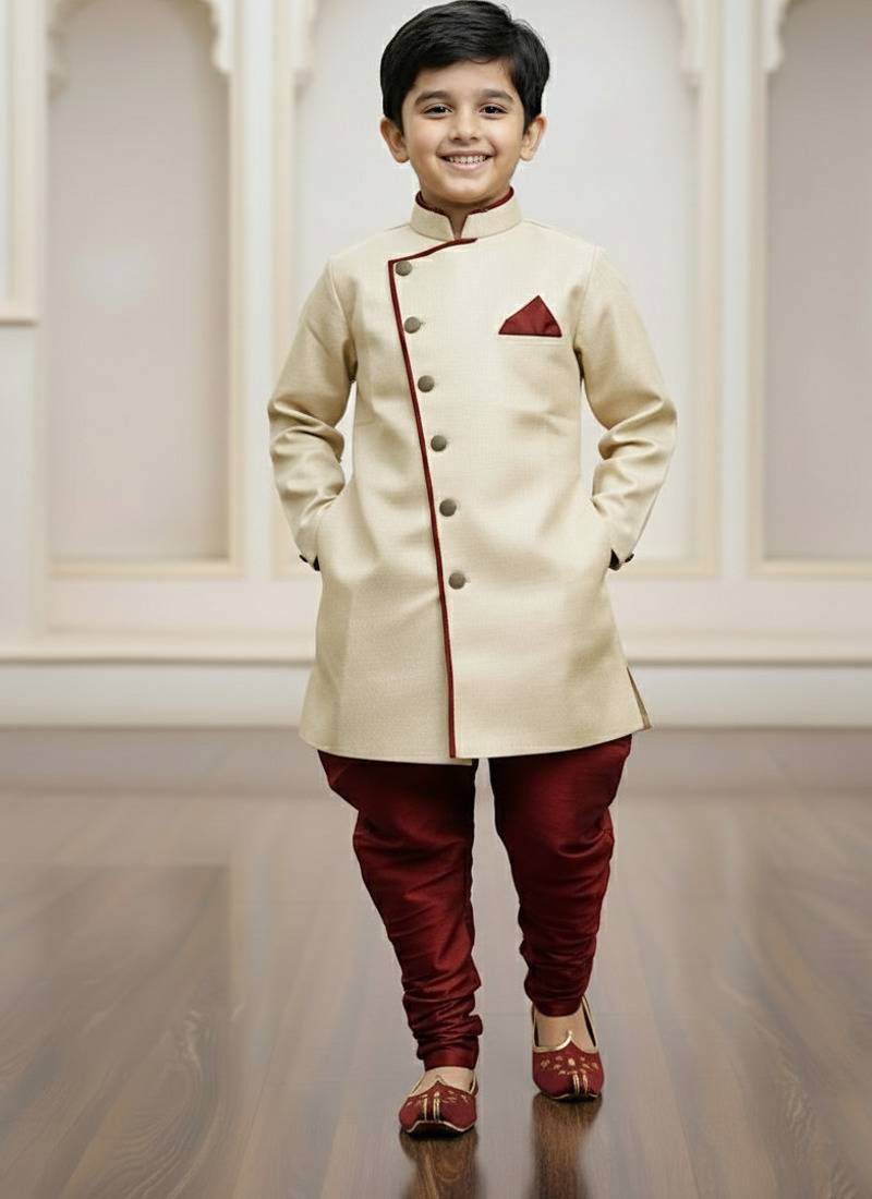 | Product Name | Gold Faux Jute Plain Boys Indo Western Dress With Pajama | |