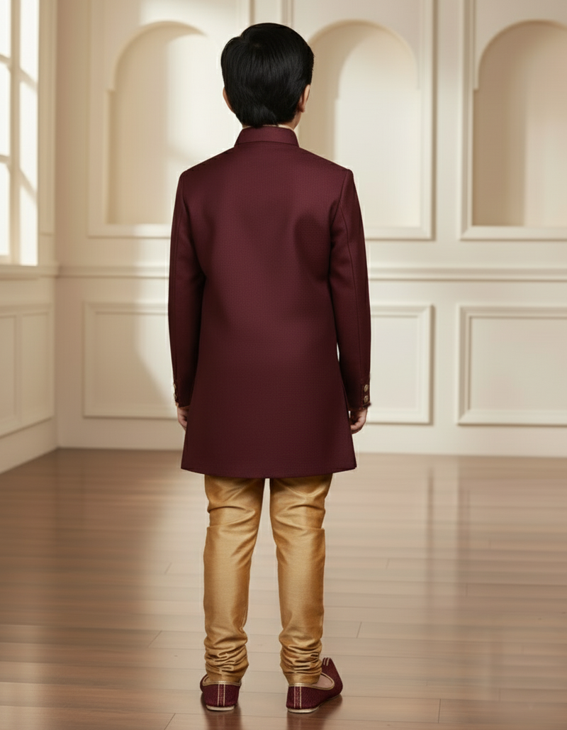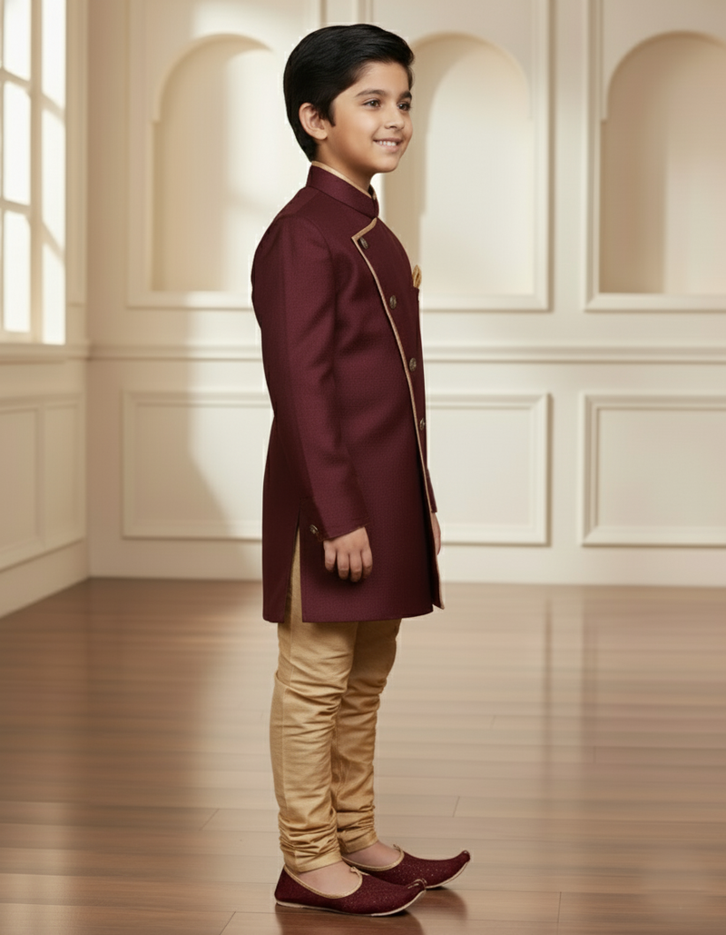 Maroon fauxJute plain boys indo western dress with pajama