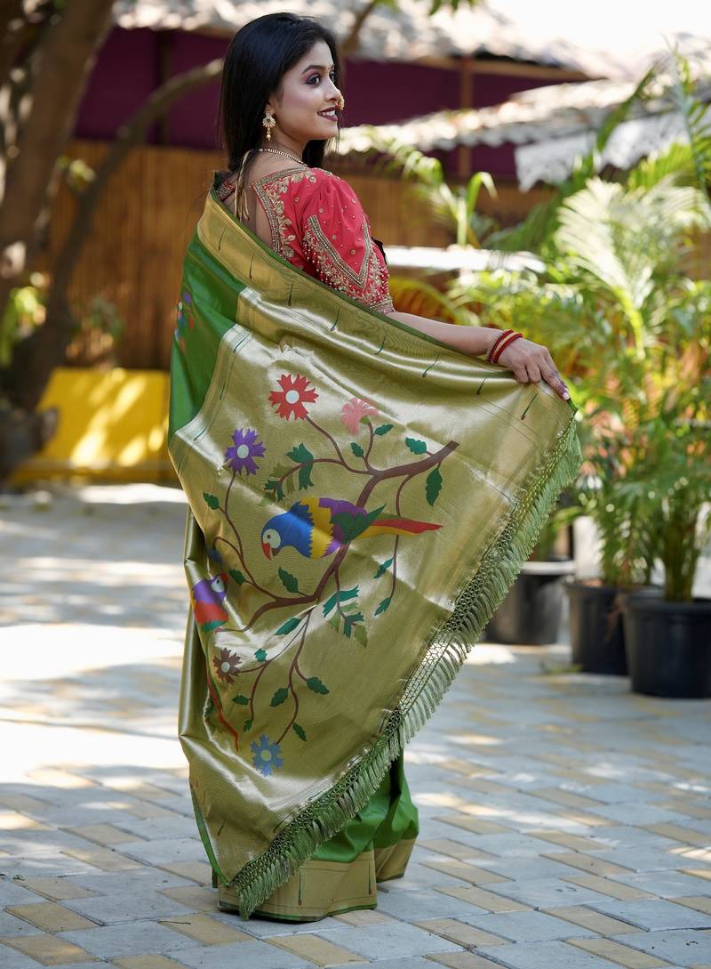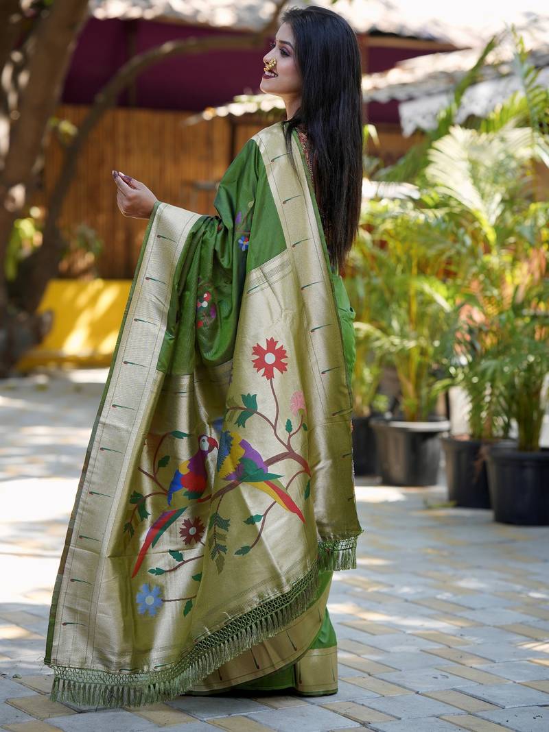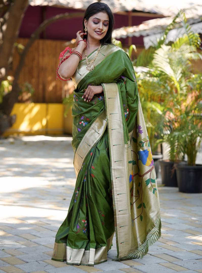 | Product Name | Dark Green Woven Paithani Silk Blend Saree With Blouse | |