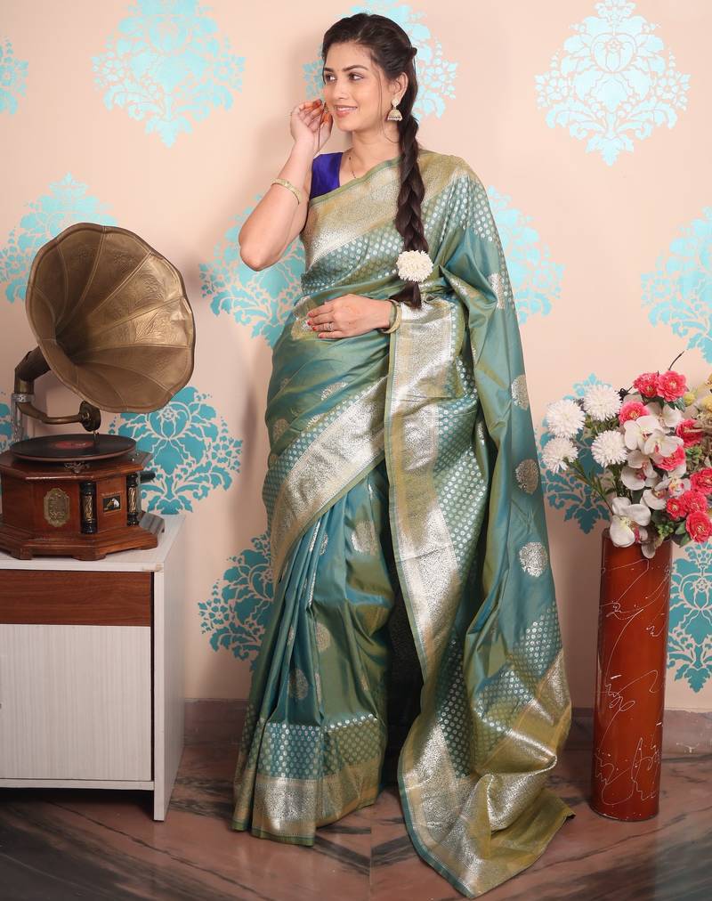 | Product Name | Green Woven Banarasi Silk Blend Saree With Blouse | |