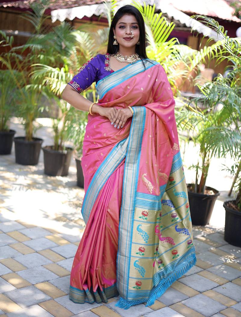 | Product Name | Pink Woven Paithani Silk Blend Saree With Blouse | |