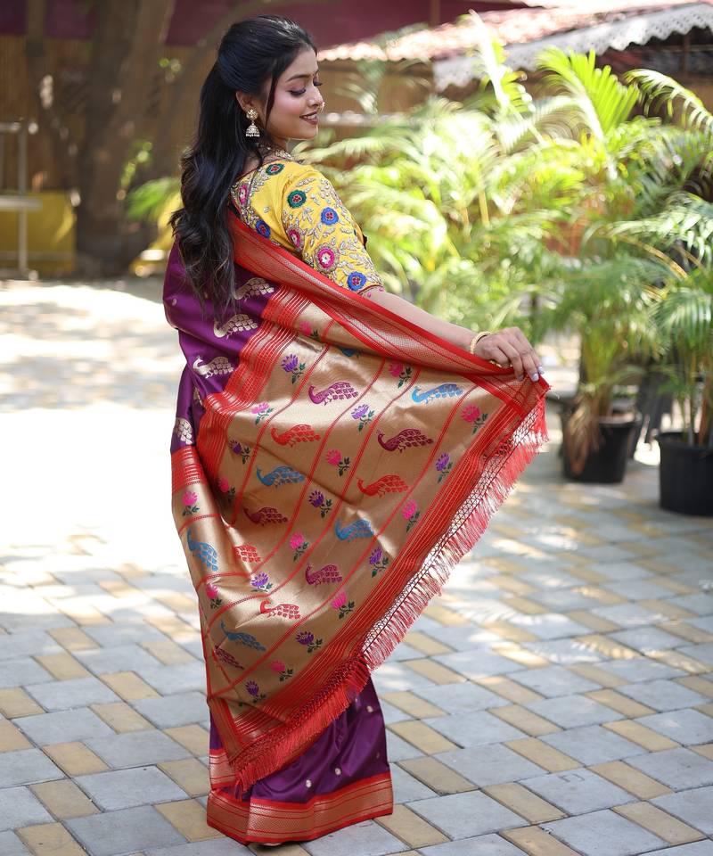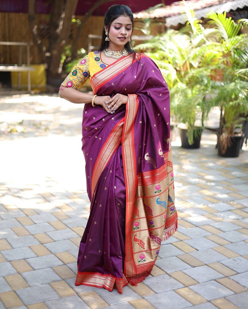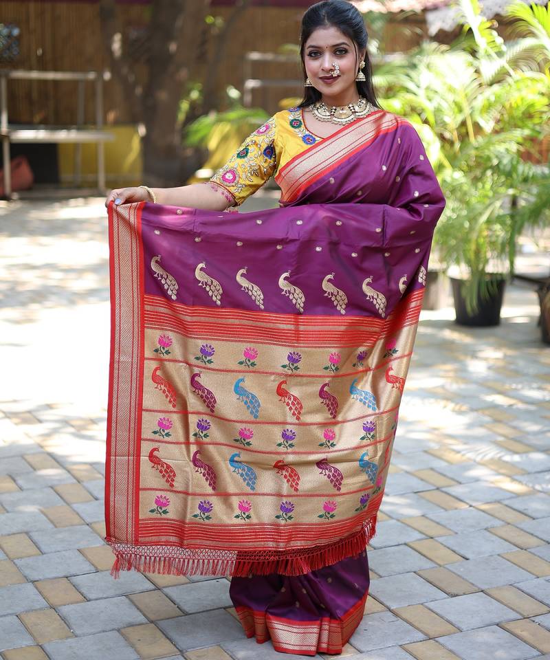 | Product Name | Wine Woven Paithani Silk Blend Saree With Blouse | |