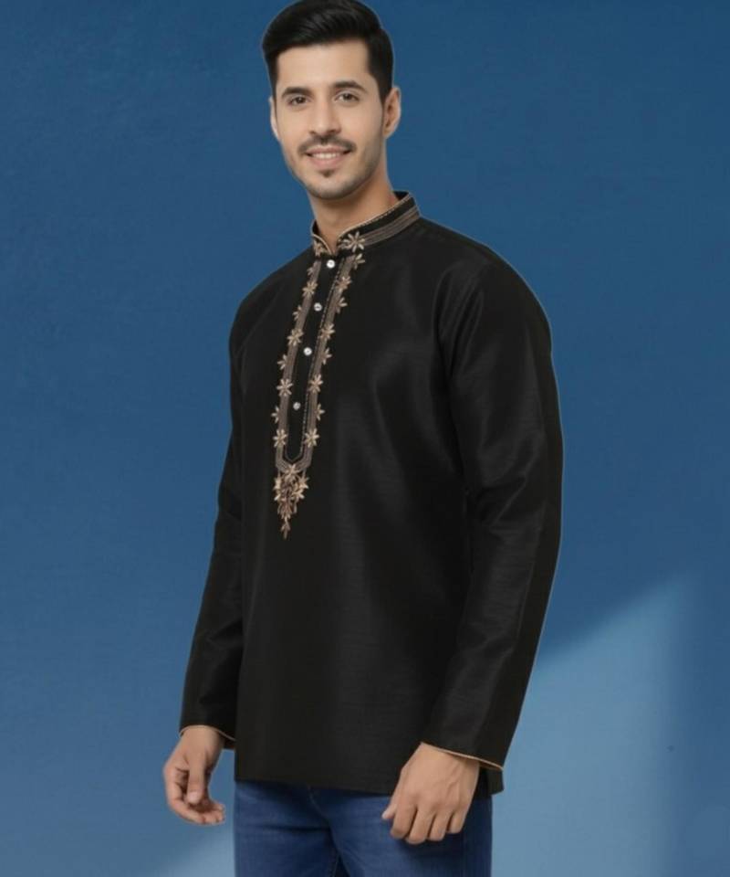 | Product Name | Black Embroidered Dupion Art Silk Kurta | |