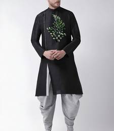Black embroidered dupion art silk kurta set