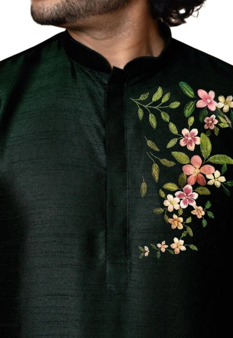 | Product Name | Bottle Green Embroidered Dupion Art Silk Kurta Set | |