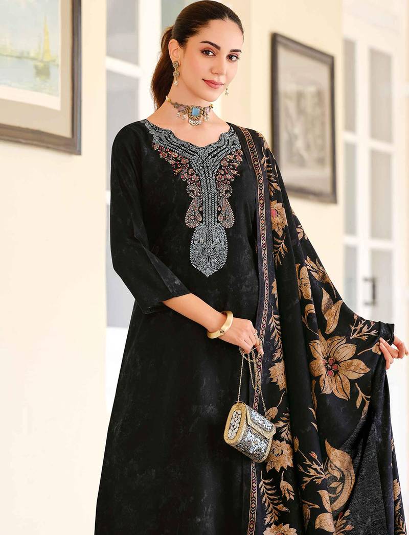 | Product Name | Stylee Lifestyle Black Pashmina Embroidered Dress Material | |