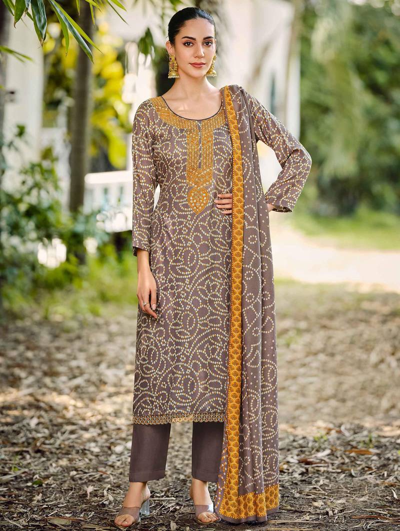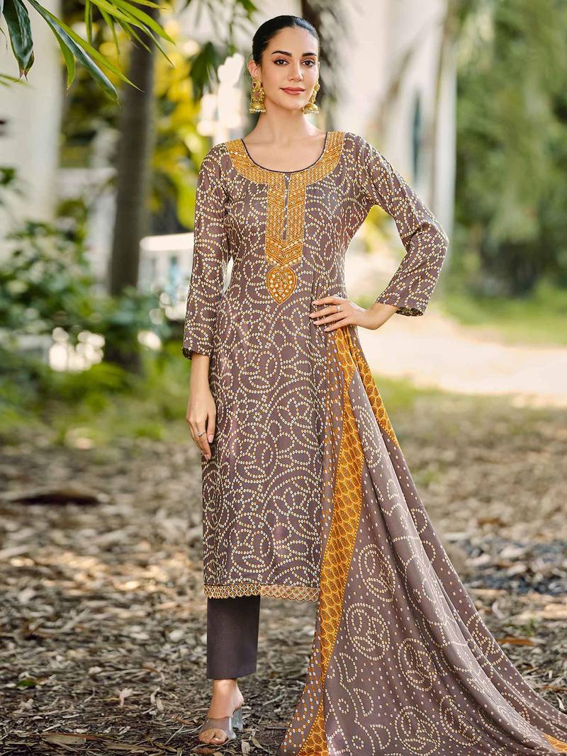 Stylee lifestyle brown pashmina digital printed dress material unstitched