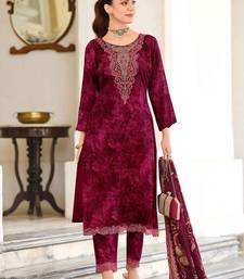 Stylee lifestyle magenta pashmina embroidered dress material unstitched