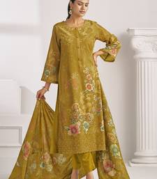 Stylee lifestyle mustard lawn cotton digital printed dress material unstitched