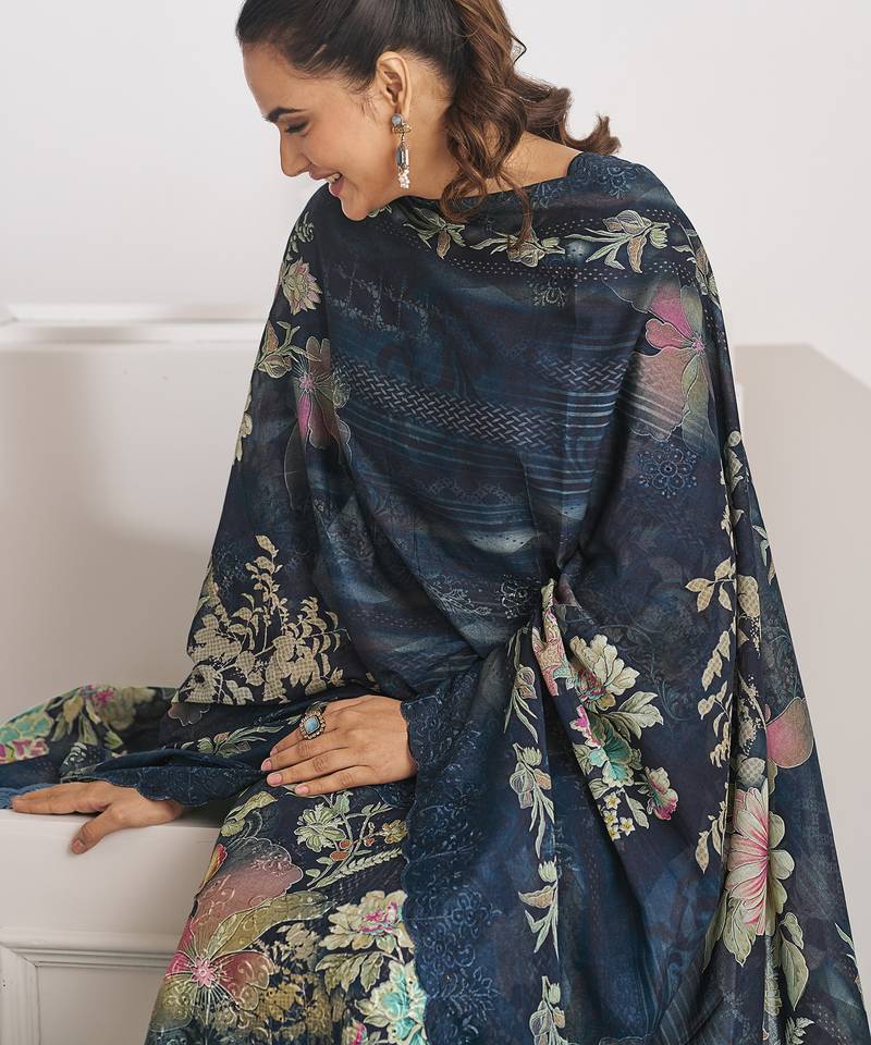 Product Name Stylee Lifestyle Navy Blue Lawn Cotton Digital Printed Dress Material