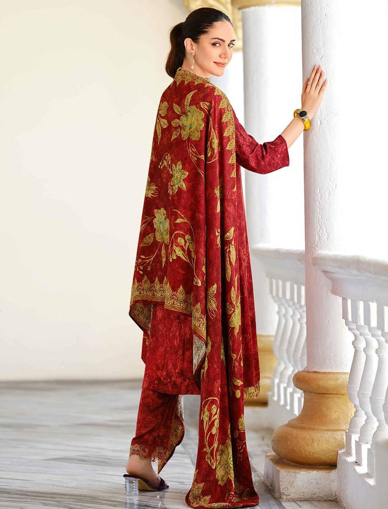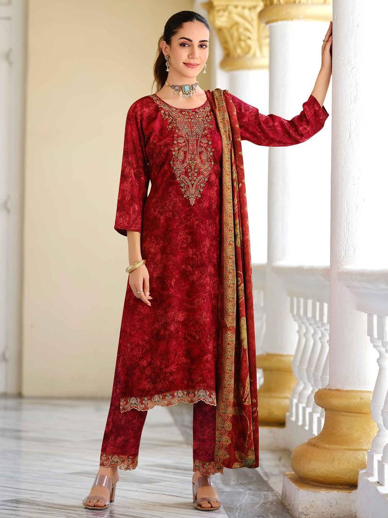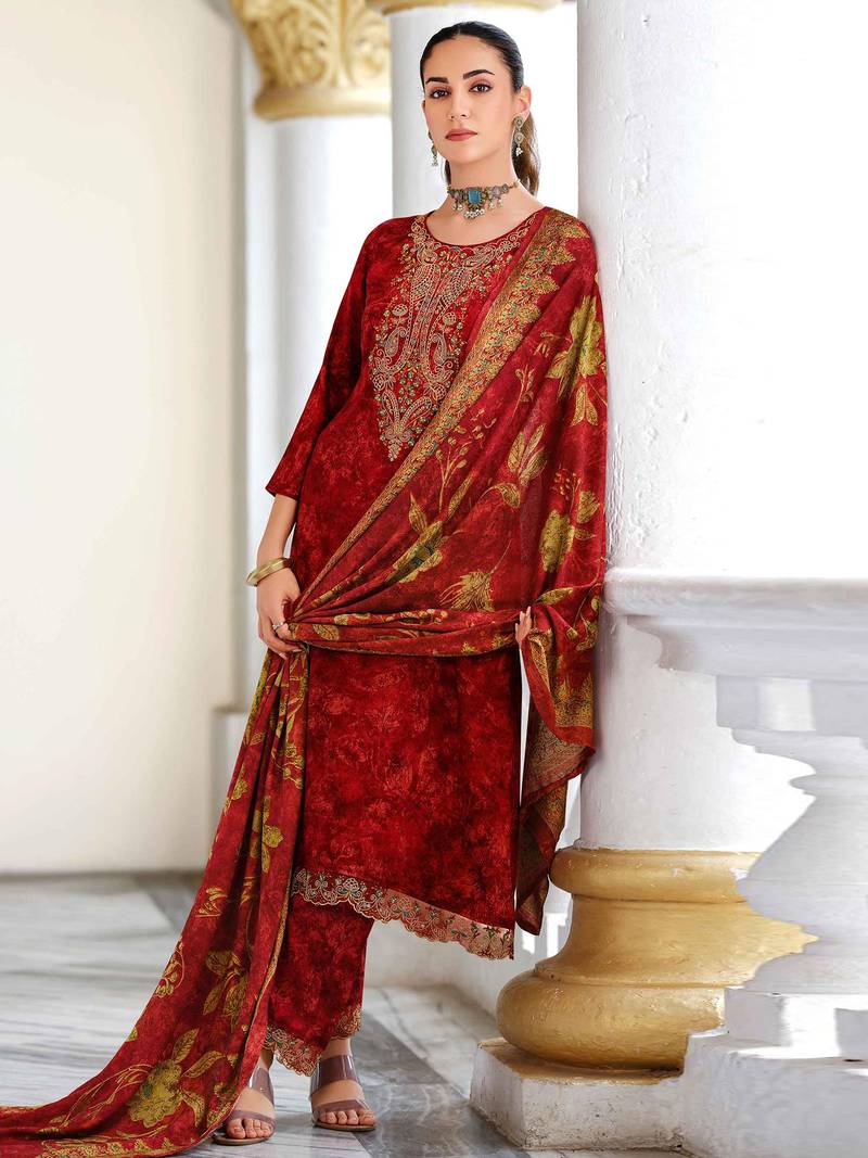 Stylee lifestyle red pashmina embroidered dress material unstitched