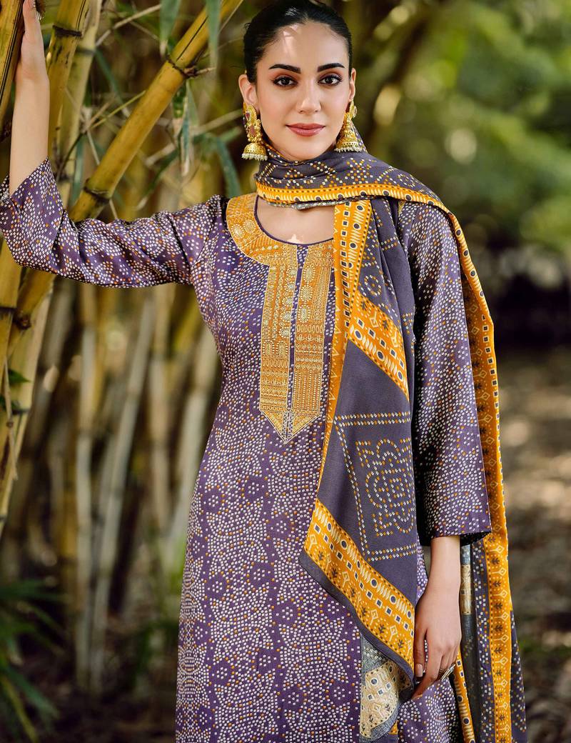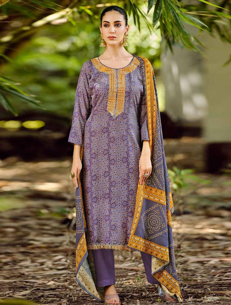 Stylee lifestyle violet pashmina digital printed dress material unstitched