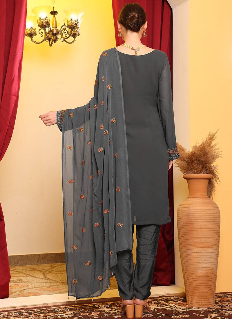 | Product Name | Grey Embroidered Faux Georgette Pakistani Suit | |