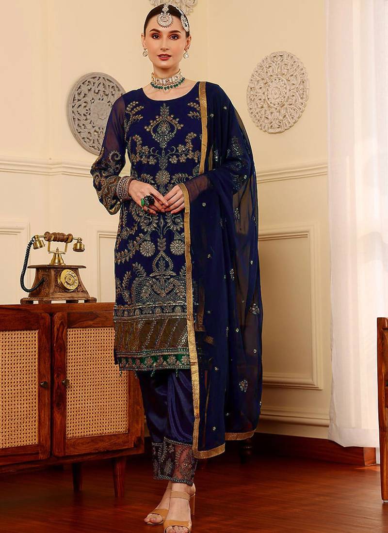 | Product Name | Navy Blue Embroidered Faux Georgette Pakistani Suit | |