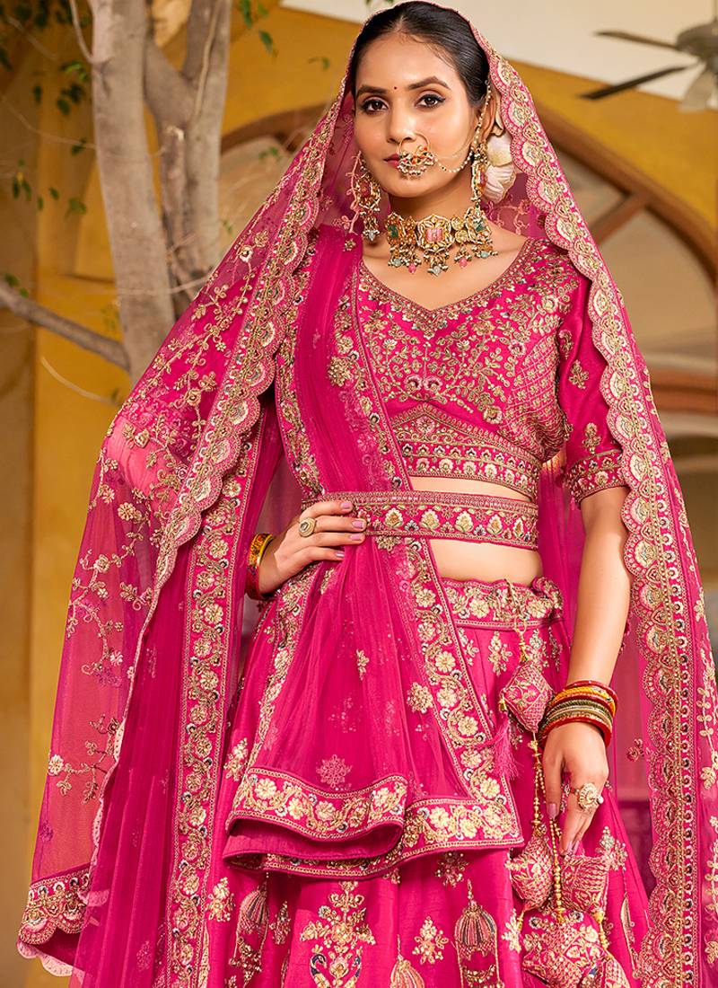 | Product Name | Pink Embroidered & Zarkan Silk With Double Dupatta Lehenga | |