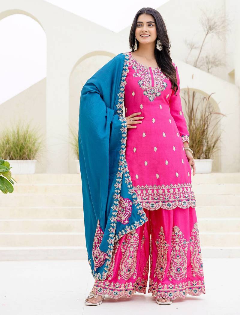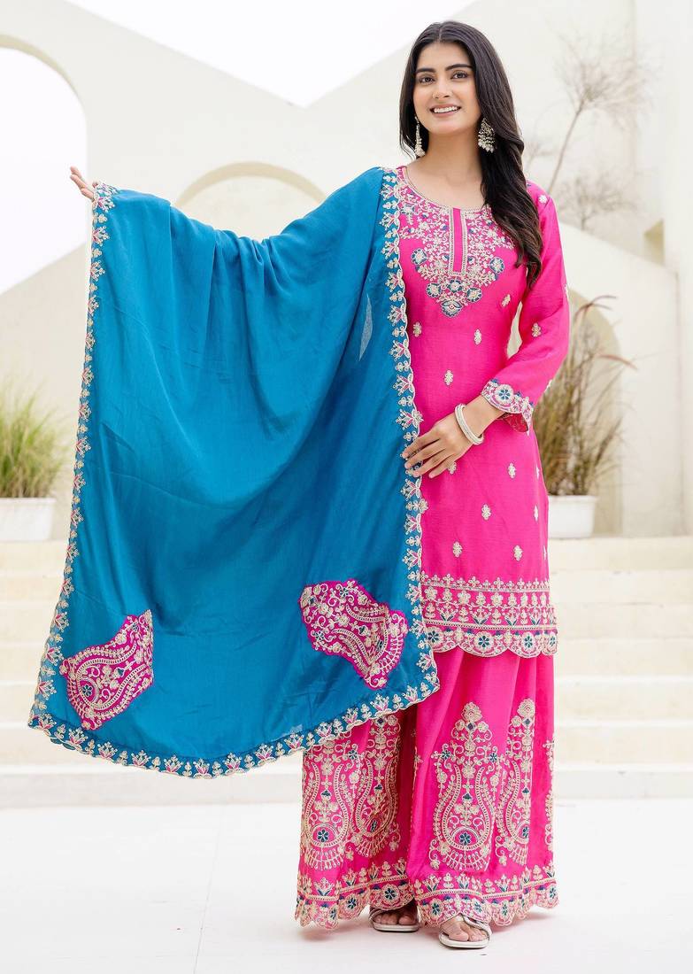 | Product Name | Pink Color Chinnon Silk Party Wear Plazo Set | |