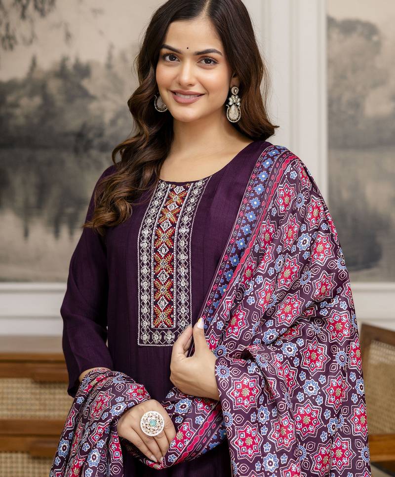 | • | Kameez | : | Color- Purple / Fabric- Art Silk |