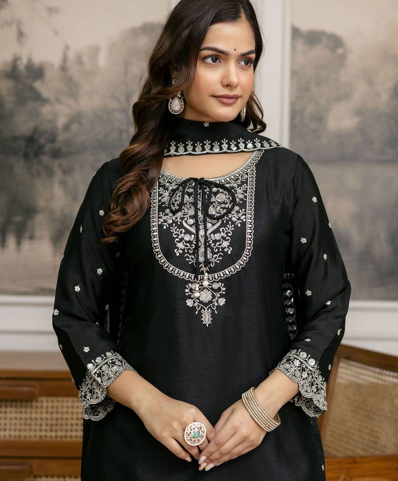 | Product Name | Women's Chinon Embroidery Sequence Work Kurta Palazzo With Dupatta For Women | |