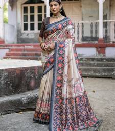 | Product Description | Premium Tussar Silk Saree Featuring Elegant Patola Print Pallu And Contrast Border.