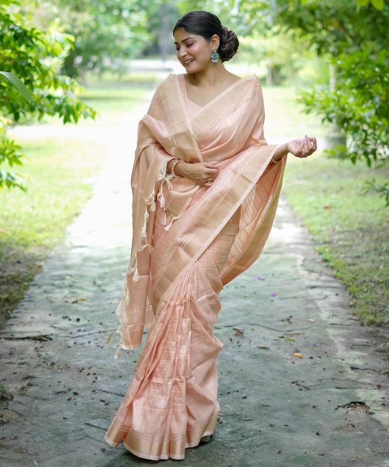 | • | Saree | : | Color- Peach / Fabric- Faux Banarasi |
