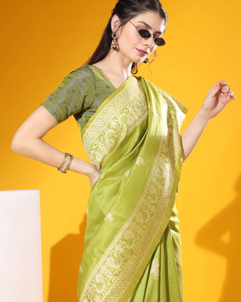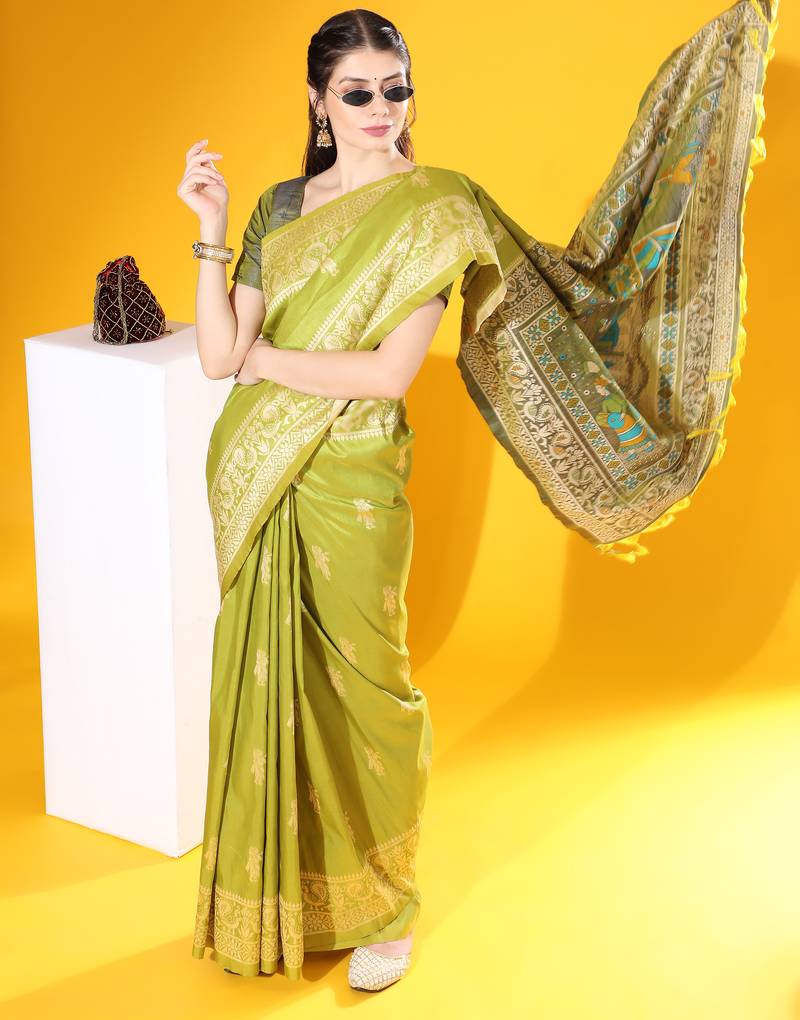 Product Name Mahendi Soft Raw Art Silk Weaving Saree With Antique Zari Border & Exclusive Designer Pallu