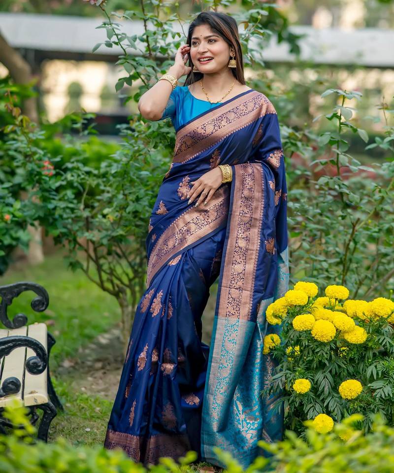 Saree : Color- Navy Blue / Fabric- Katan Silk