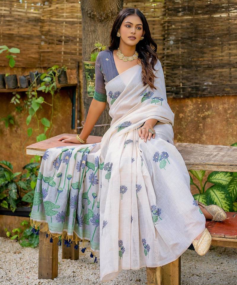 | Product Name | Navy Blue Soft Muga Silk Saree With All Over Floral Weaving | Pichwai Woven Pallu | Classic Tassels | Contrast Blouse | |