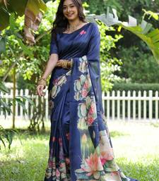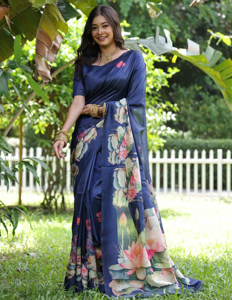 | Product Name | Navy Blue Tussar Art Silk Lotus Print Saree With Designer Pallu & Floral Border With Running Blouse | |