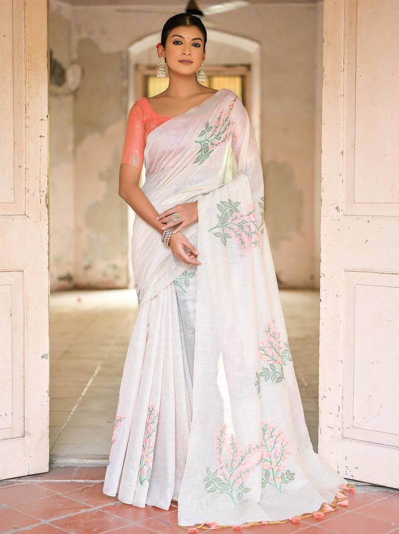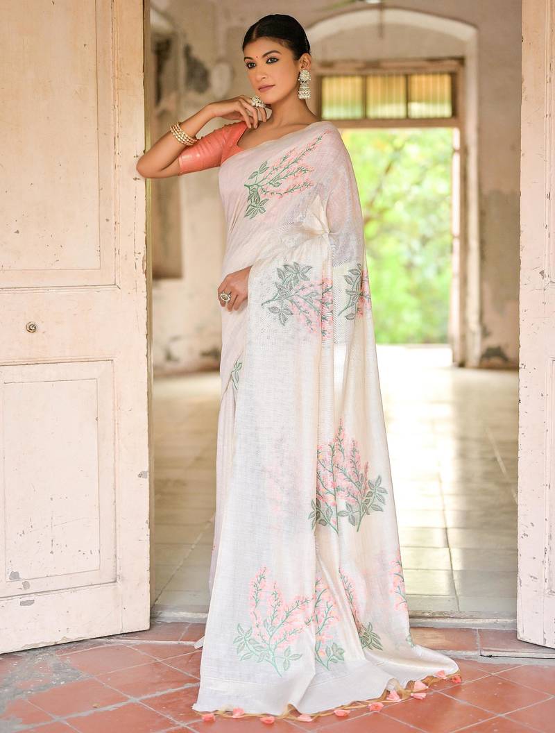 | • | Saree | : | Color- Peach / Fabric- Blended Cotton |