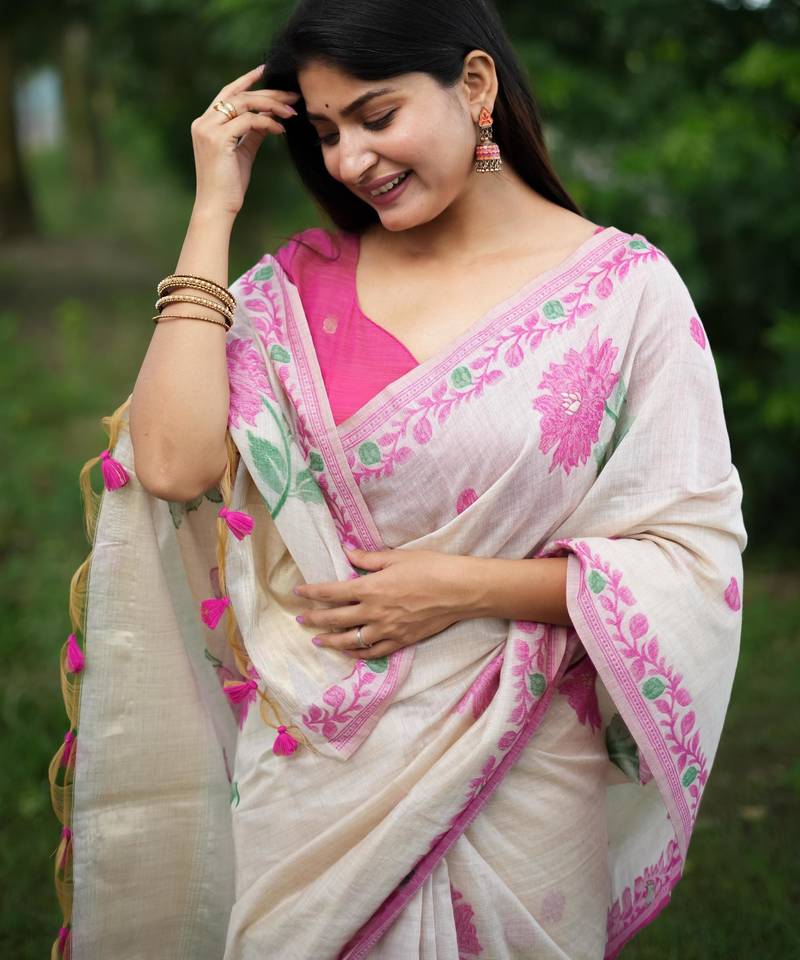 | Product Description | • Soft Muga Cotton Saree With Premium Jamdani Style Woven Border For An Elegant Ethnic Look.