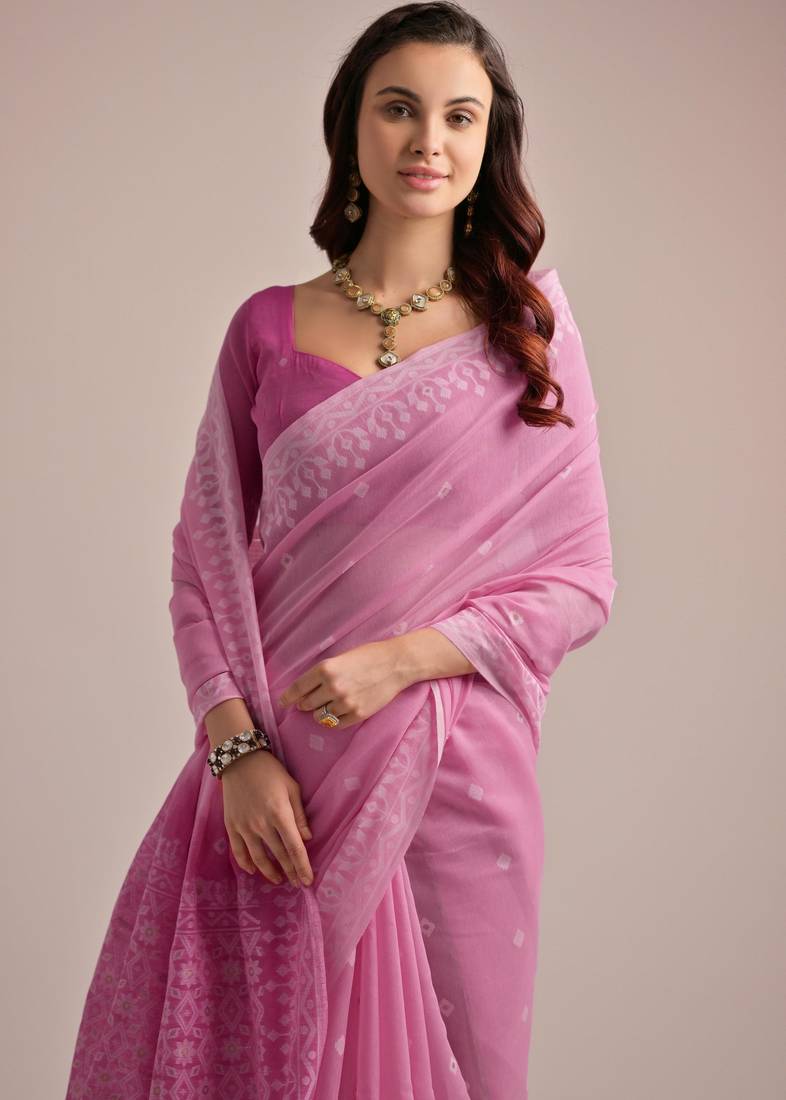 | • | Saree | : | Color- Pink / Fabric- Blended Cotton |