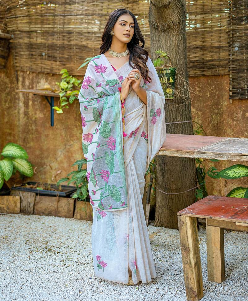 | Product Description | • Soft Muga Silk Saree Crafted With Intricate All Over Floral Weaving For A Premium Handloom Feel.