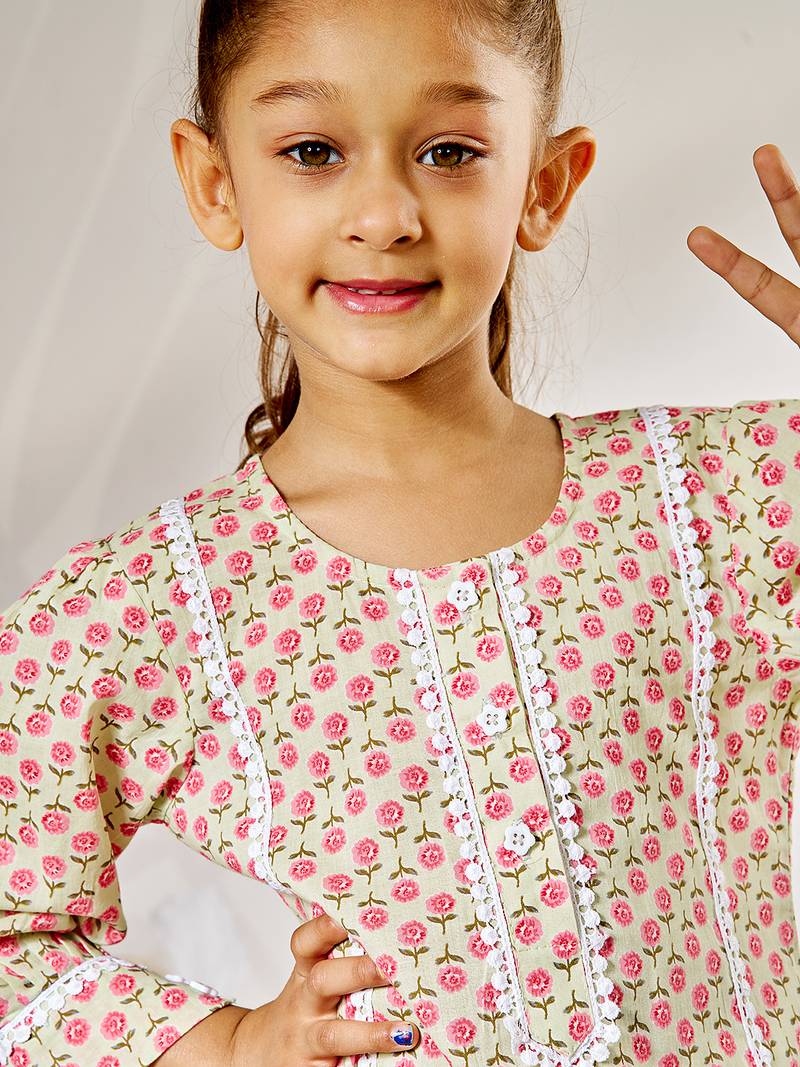 | Product Name | Girl's Traditional Mint Green Cotton Kurta Leggings Set With Floral Print For Festival Wear Collection (22 30) | |
